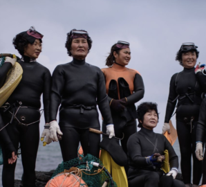 Haenyeo — female divers in South Korea — clad in wetsuits and occasionally pink-ringed eye masks, free-dive without oxygen for a minute at a time, hoping to harvest sea cucumbers, conchs, and abalones.