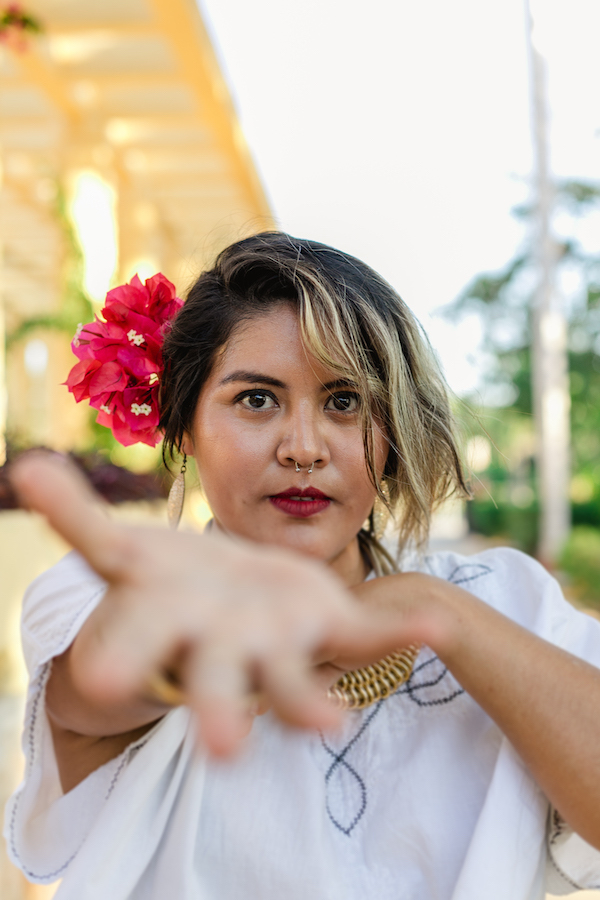 “Lately, I’ve been reflecting on the politics of being a Yucatecan woman. This reflection is growing along with my feminism and the recognition of myself as a mestiza (mixed race). It’s about recognizing my physiognomy, the way that I move, the way I talk, my accent…I want to portray the pride of the modern Yucatecan woman.” — Jaz (Ágata Casa Vogue)