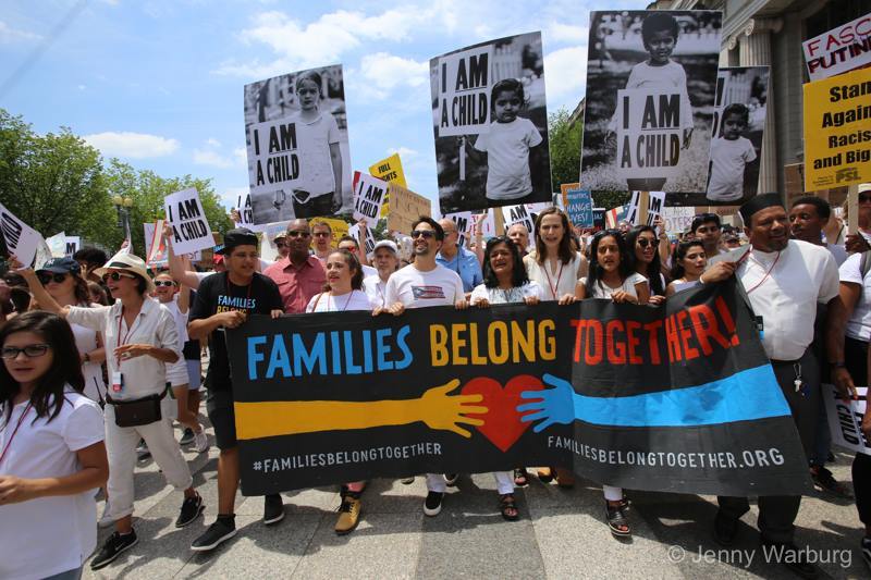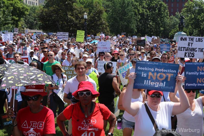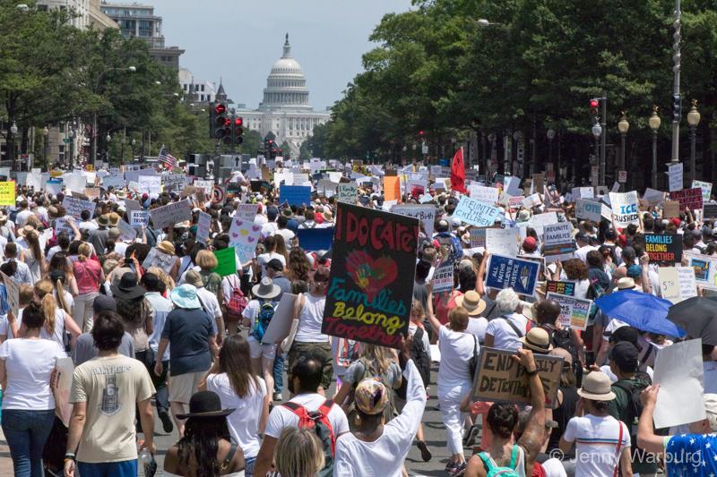 Demonstrators gathered for the Families Belong Together March in Washington. (Photo by Jenny Warburg)