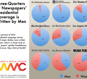 On Monday the Women’s Media Center released the shocking statistic, calculated by The 4th Estate Project, that from the presidential primary period (January 1 to April 15) to the general election (April 15 to August 25), 72 to 76 percent of newspaper stories covering the 2012 presidential election were written by men.