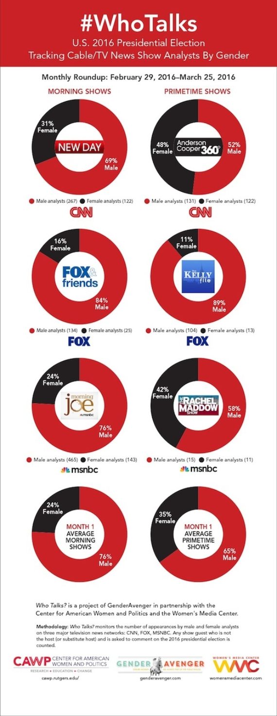 #WhoTalks - Cable/News Analysts & Gender in 2016 Presidential Election Month 1