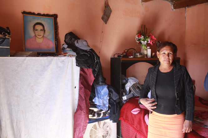 Dona Doña Caldera poses with a photo of her daughter María Elena, 15, who left for work on June 19, 2000, and never returned. (Itzel Aguilera/CEDIMAC)