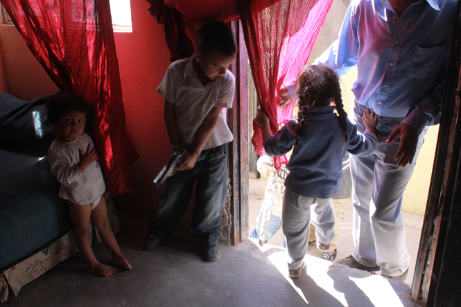 Children play “outlaw” because, as the photographer says, “they see so many stories of violence and they live it every day.” (Itzel Aguilera/CEDIMAC)