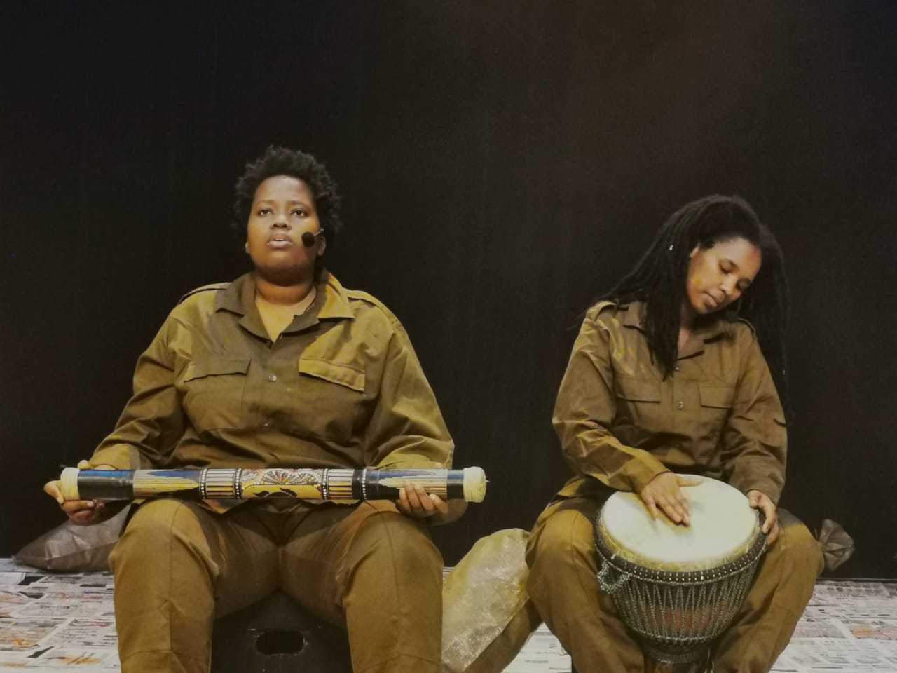 Jonas was the last soldier to join the stage, completing the three-woman chorus who embodied the daily wars waged against women in South Africa. Jonas was joined by Hope Netshivhambe, co-writer of the production whom she met at a poetry workshop; and vocalist Babalwa Makwetu, who wrote the music. Jonas had worked with both women in the past at different spoken-word events. “They were my first choice in sharing this work,” said Jonas.
