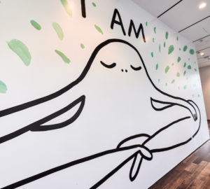 A 75-foot mural by Chanel Miller is among the works displayed in the museum's new Wilbur Gallery.